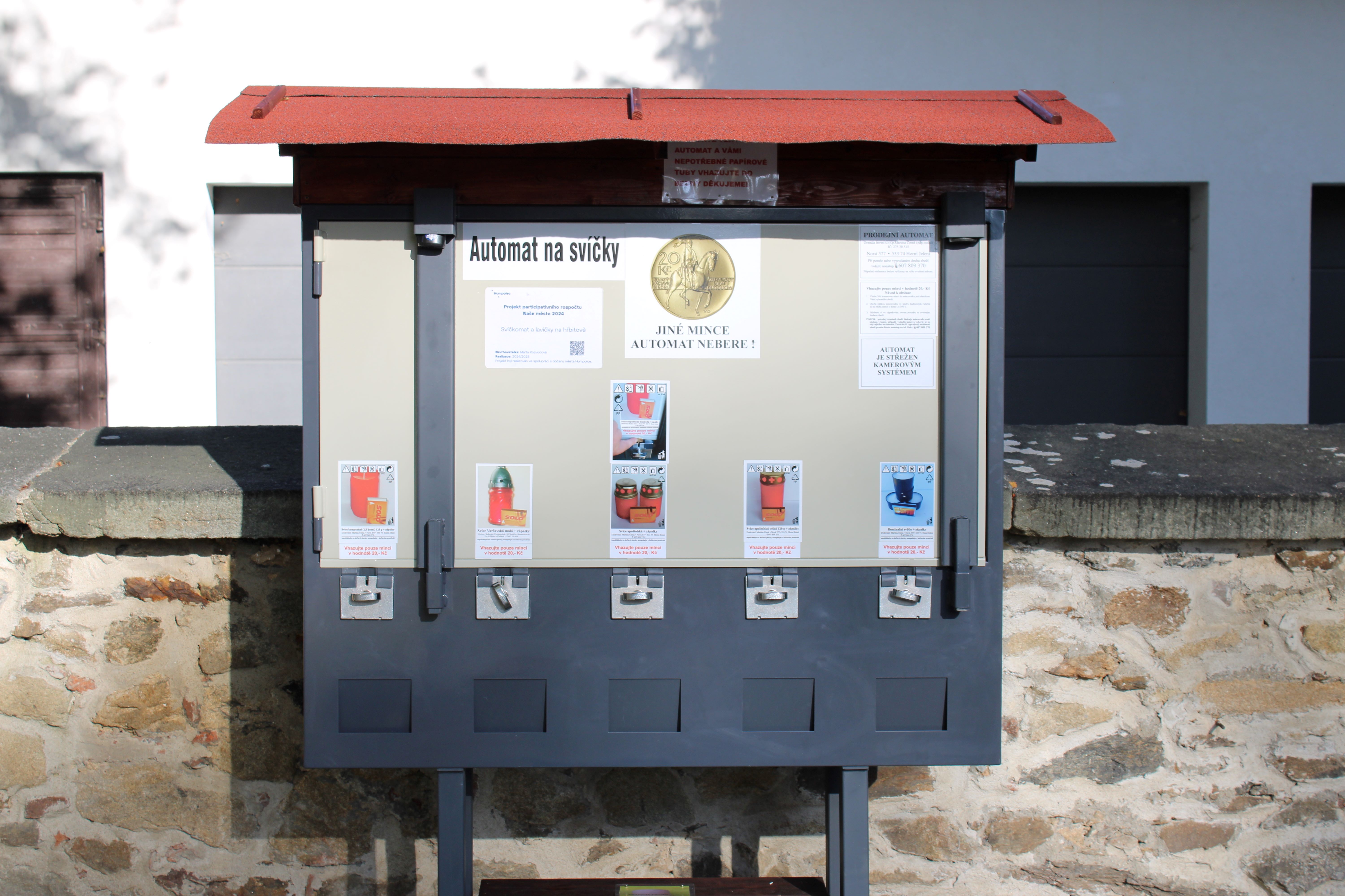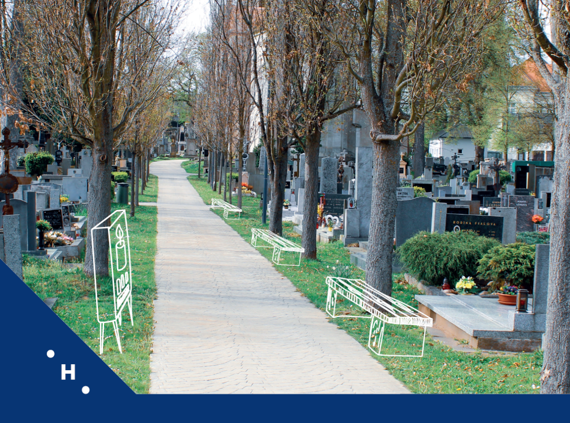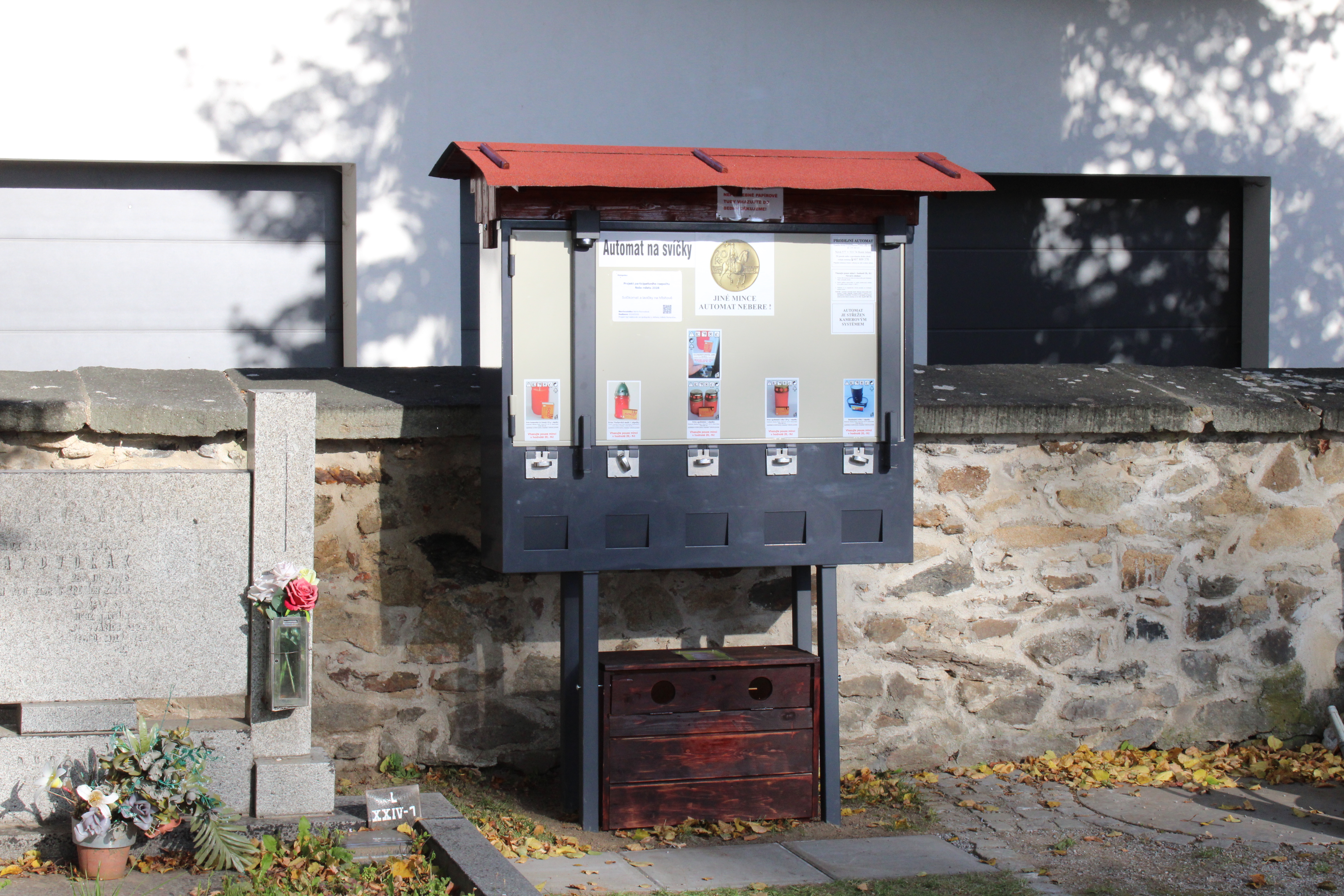 Umístění automatu na svíčky a laviček pro návštěvníky hřbitova.