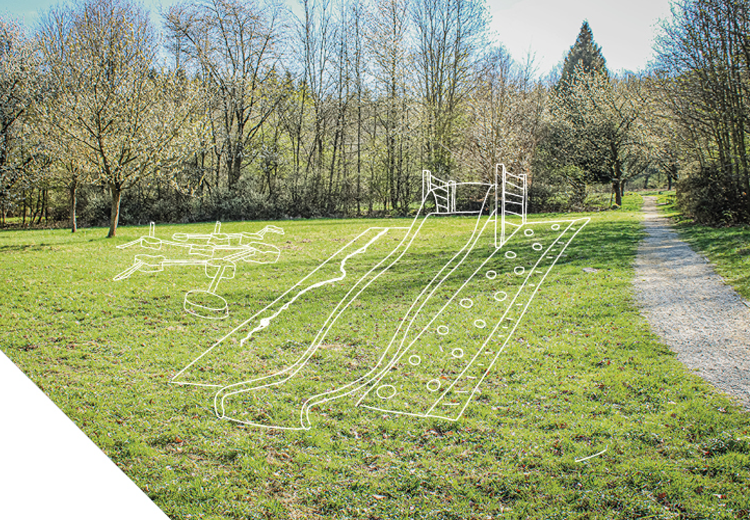 Dřevěné herní prvky a přírodní skluzavka v lokalitě Podhrad, která spojuje město a Hrad Orlík